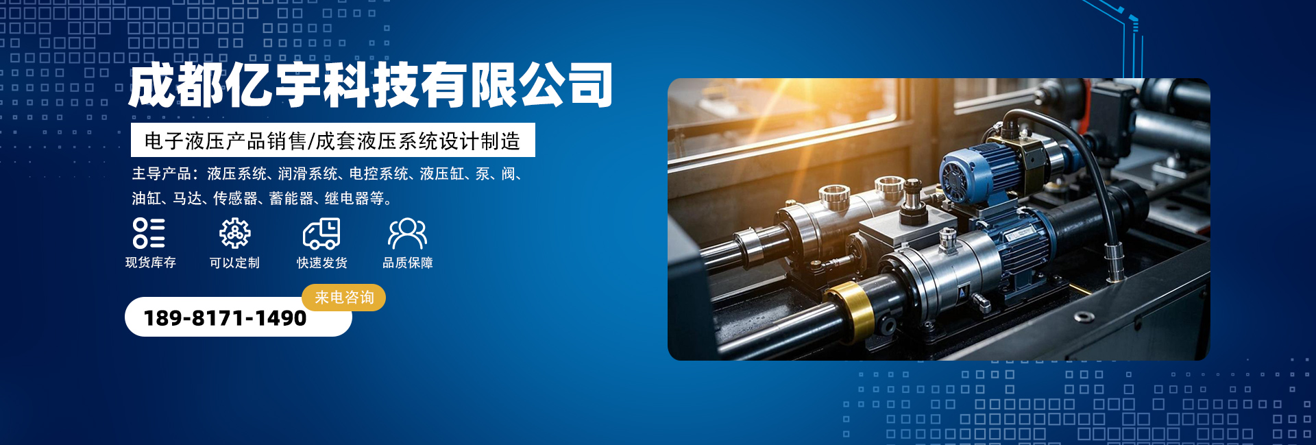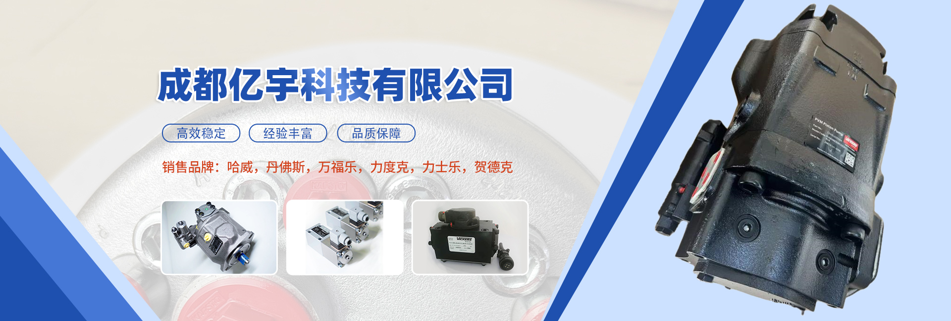 成都億宇科技有限公司是一家專業(yè)從事電子液壓產(chǎn)品銷售及成套液壓系統(tǒng)設(shè)計制造的高科技企業(yè)。 主導(dǎo)產(chǎn)品:液壓系統(tǒng)、潤滑系統(tǒng)、電控系統(tǒng)、液壓缸,泵,閥,油缸,馬達,接頭,管件,傳感器,蓄能器,繼電器,密封圈等。同時擁有熟悉國內(nèi)外液壓機電產(chǎn)品的專業(yè)人員為您解決機械液壓方面的問題,并匯集了一批在流體傳動領(lǐng)域內(nèi)具有豐富實踐經(jīng)驗的專業(yè)技術(shù)人才,致力于各種高品質(zhì)液壓產(chǎn)品及系統(tǒng)的研制工作。經(jīng)過我們不懈的努力發(fā)展和創(chuàng)新,已與眾多國內(nèi)外供應(yīng)商建立了良好的合作關(guān)系,在價格及供貨周期上均有較